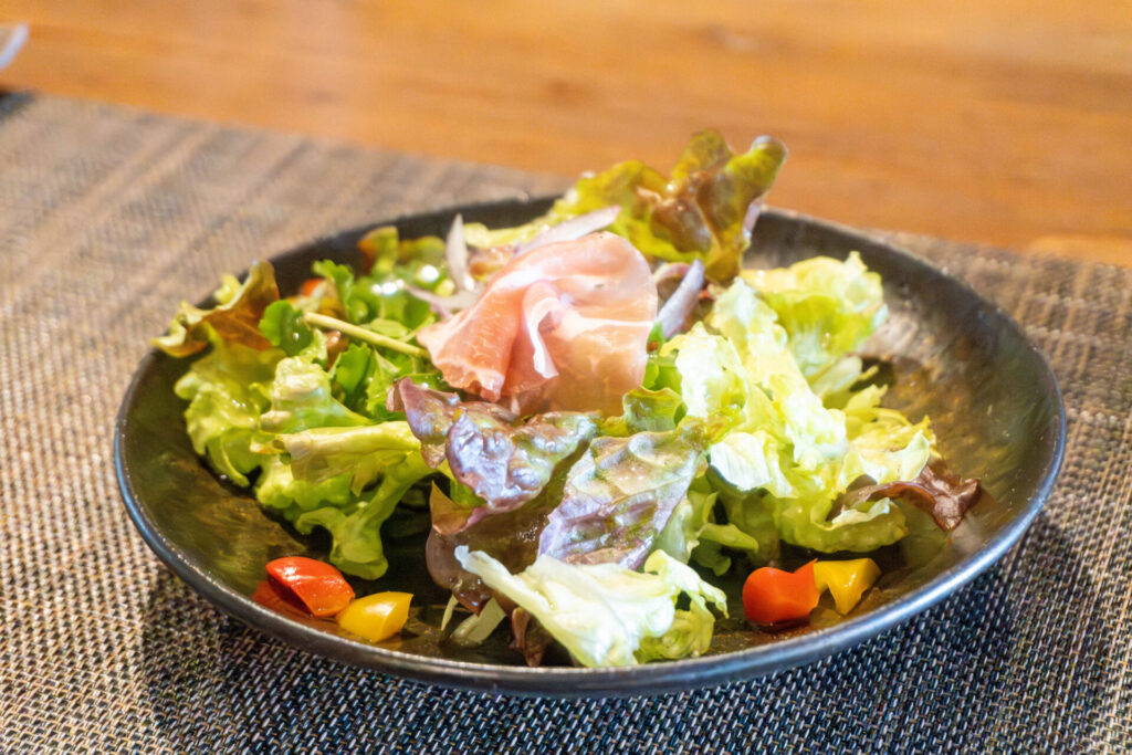 レストランでは、次郎さんが育てた20種類以上の野菜を使ったコース料理を提供。前菜からメイン、デザートまで、すべてゆかりさんが一人で手作りしています。次郎さんは接客や飾りつけなど料理以外の業務を担当し、ゆかりさんが料理に集中できる環境を整えています。